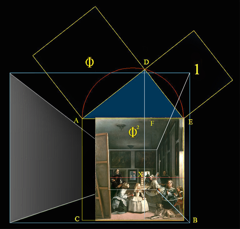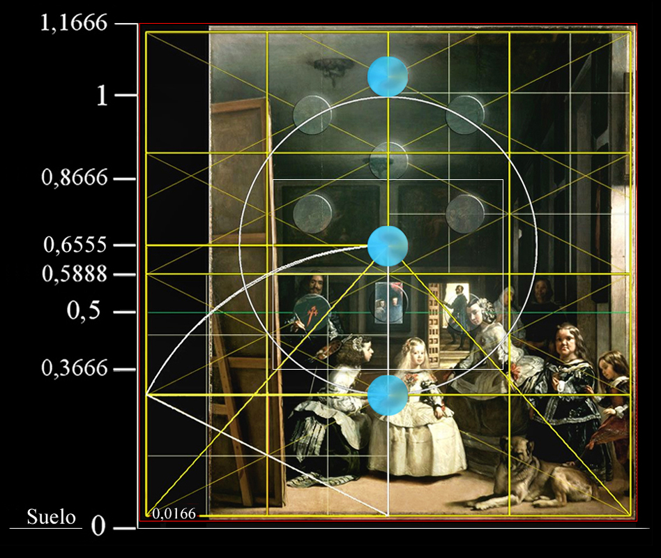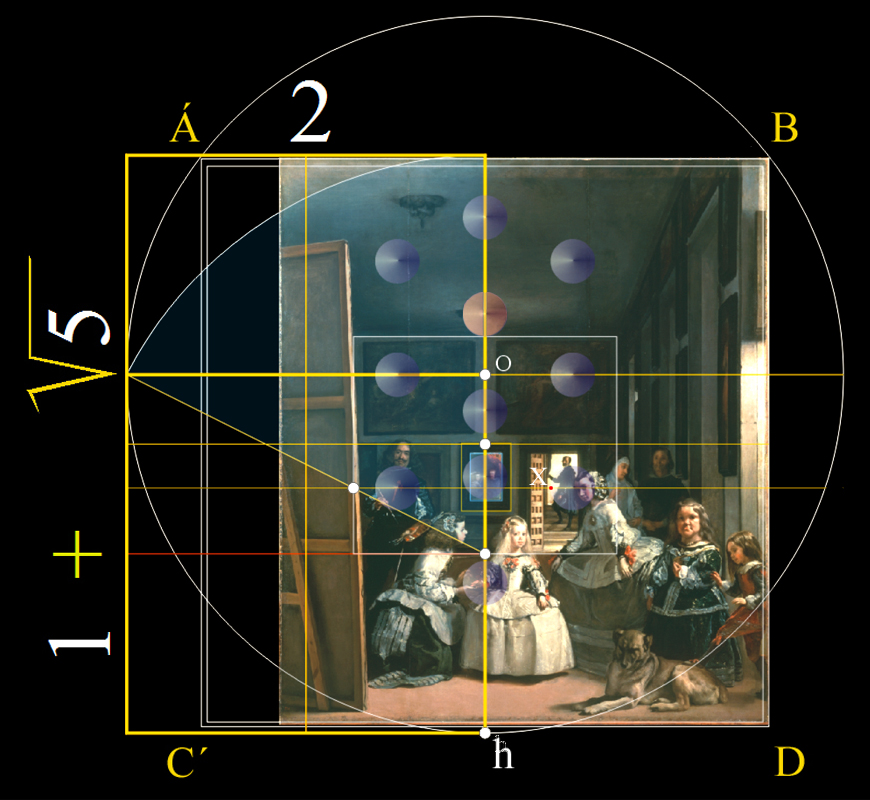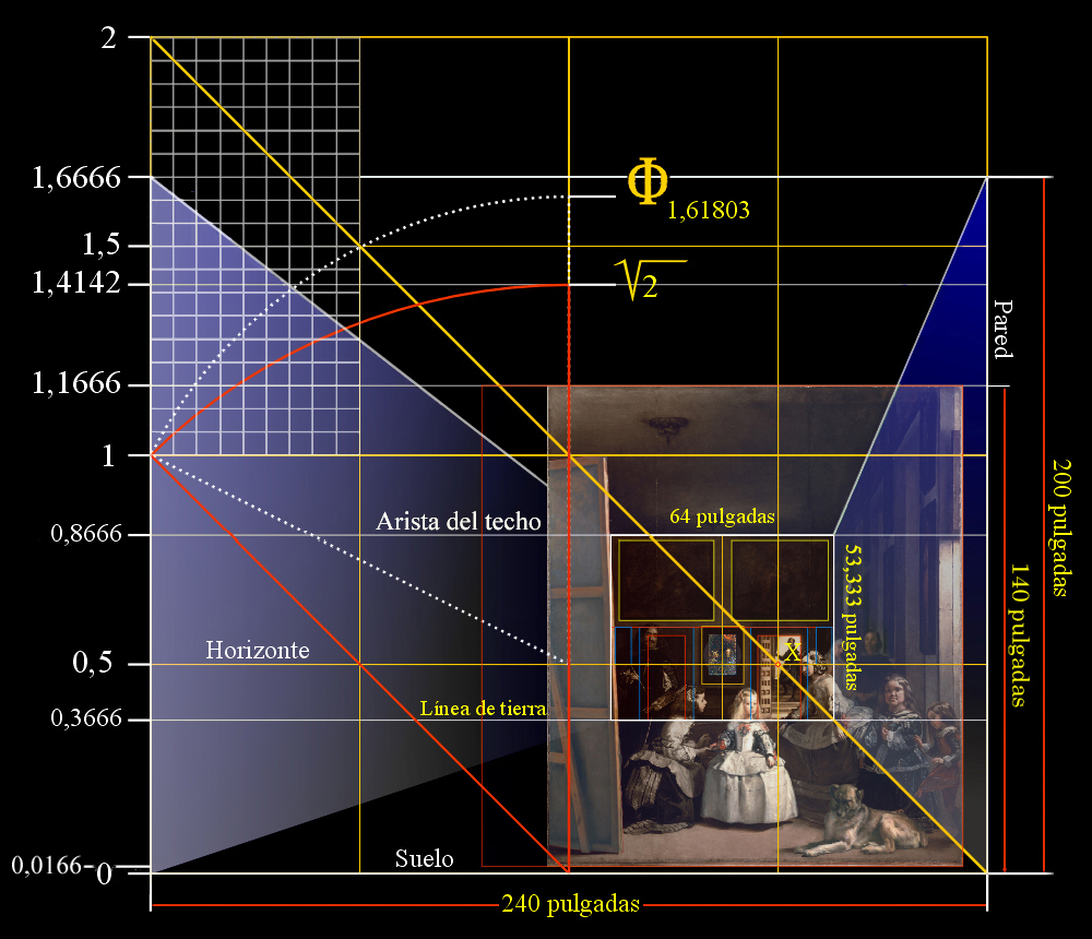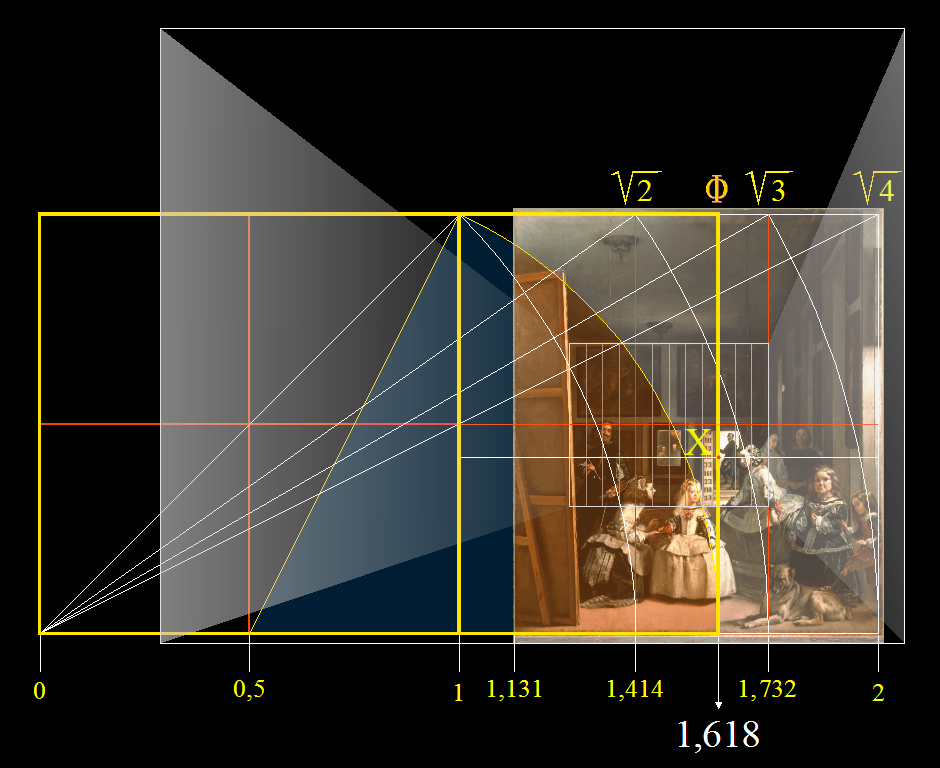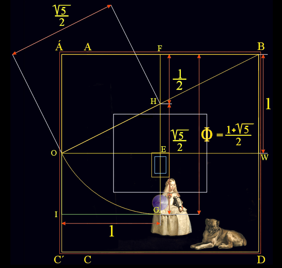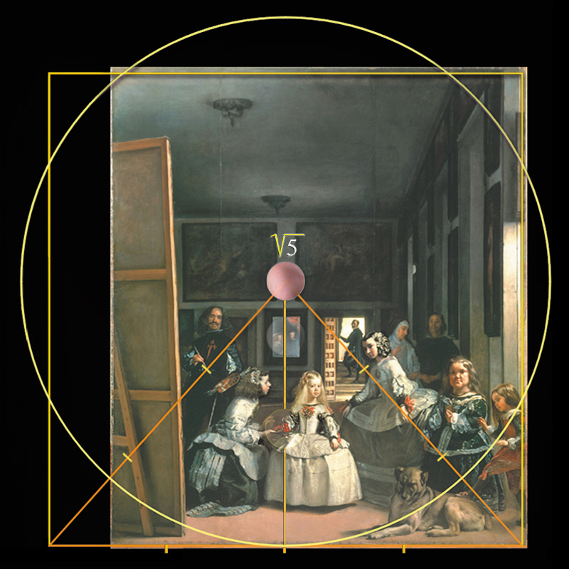 Y cierto es que Velázquez, además de pintar con gran naturalismo, compuso su obra maestra con proporción áurea, una Geometría cuya utilidad se demuestra con la ayuda de un cuadrado de 152 unidades de lado.