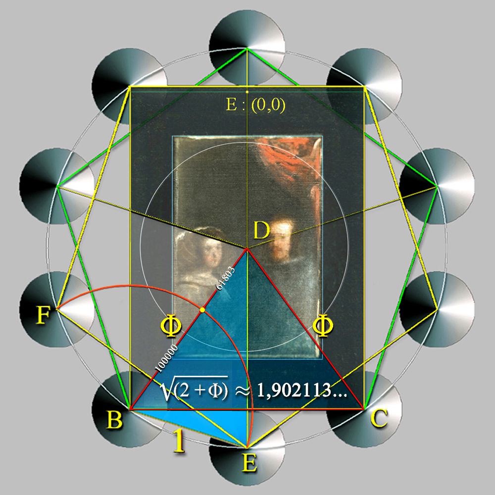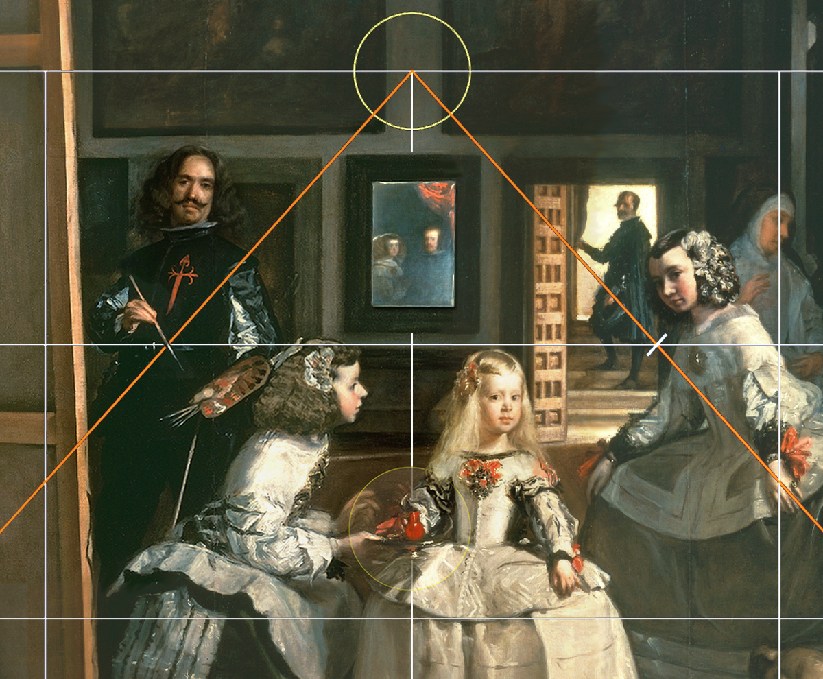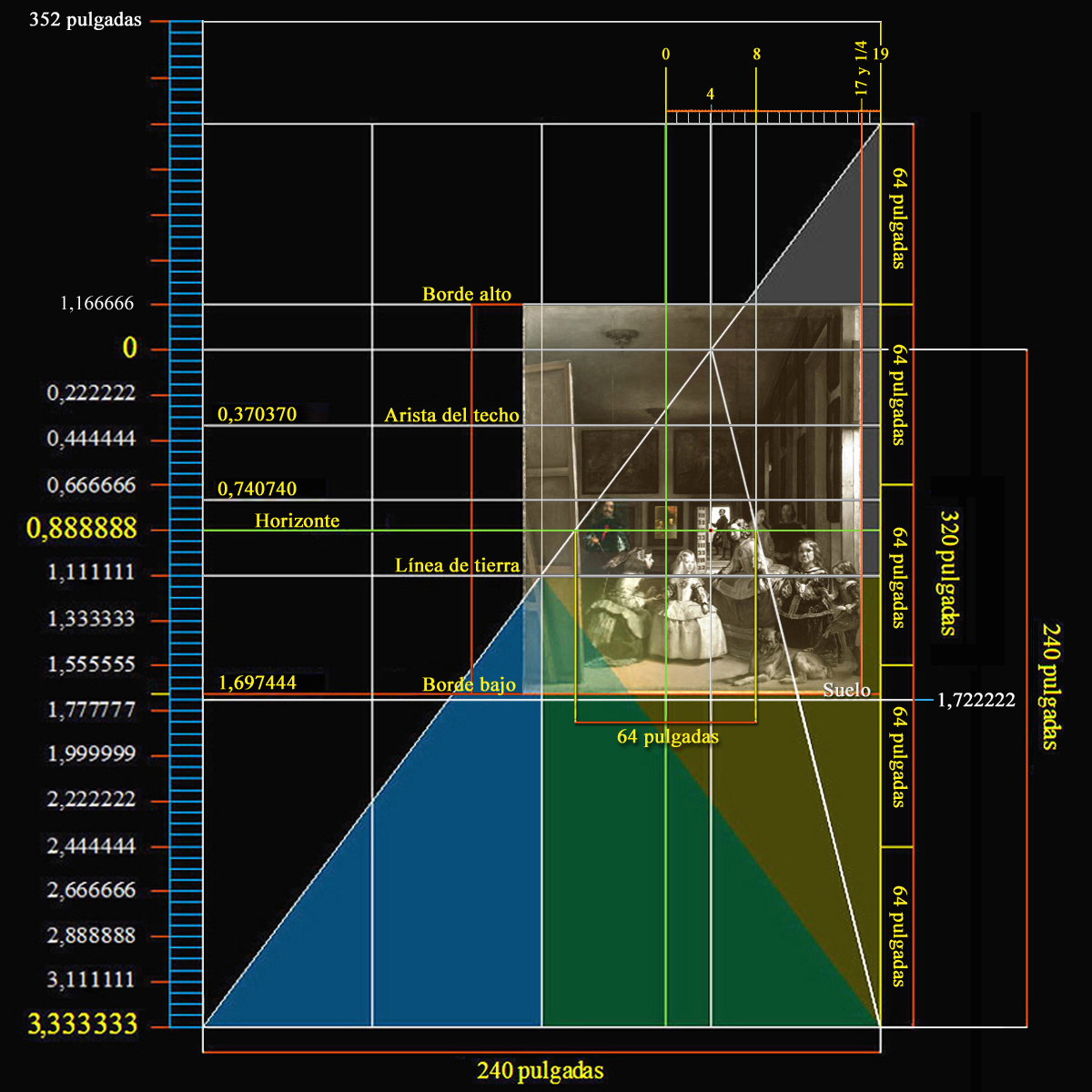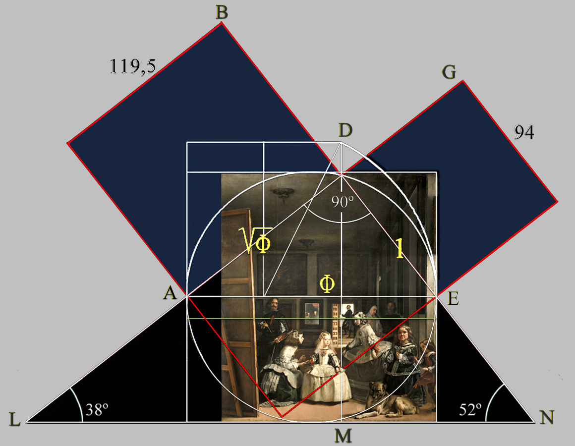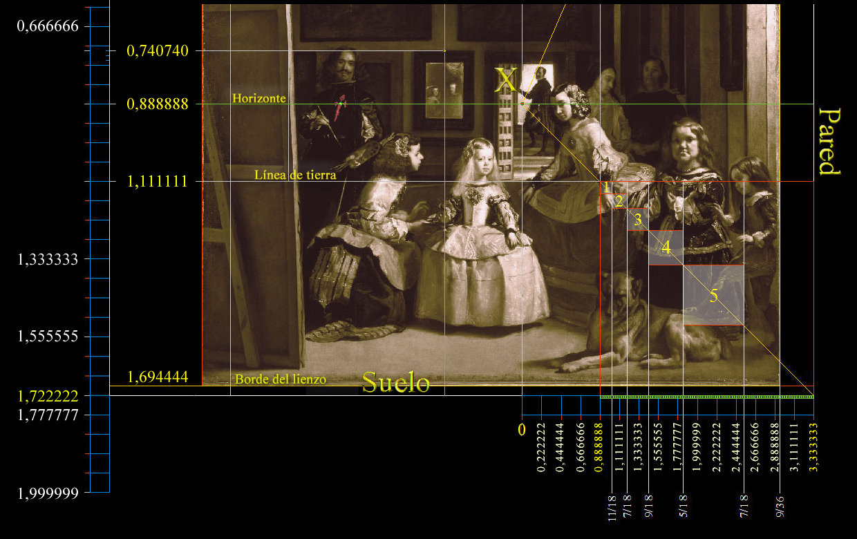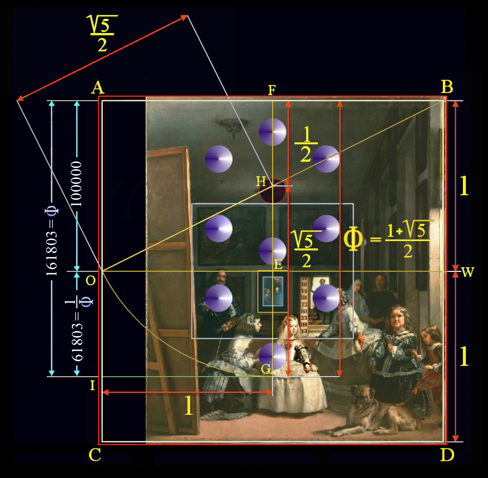 Y cierto es que Velázquez, además de pintar con gran naturalismo, compuso su obra maestra con proporción áurea, una Geometría cuya utilidad se demuestra con la ayuda de un cuadrado de 152 unidades de lado.