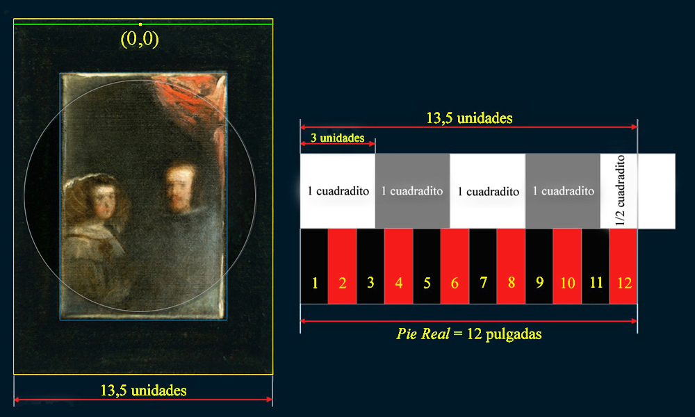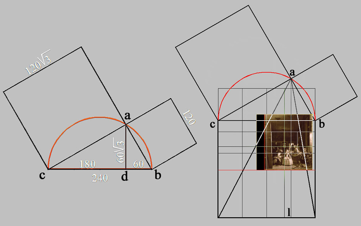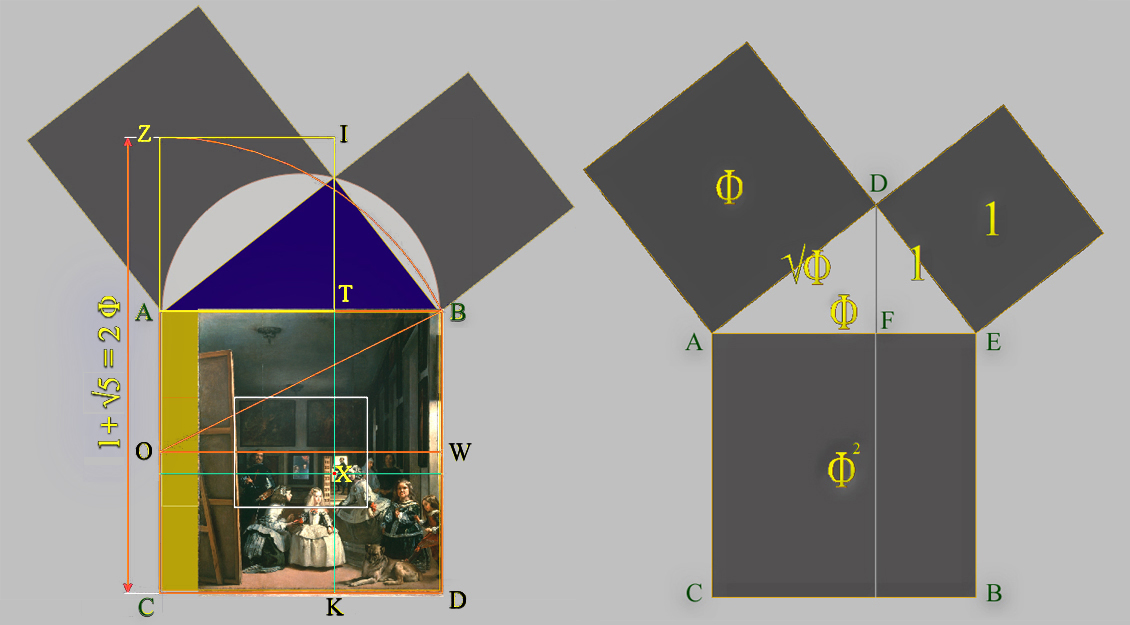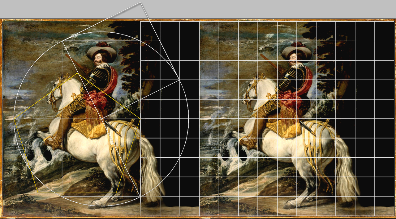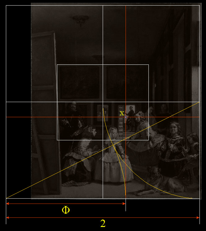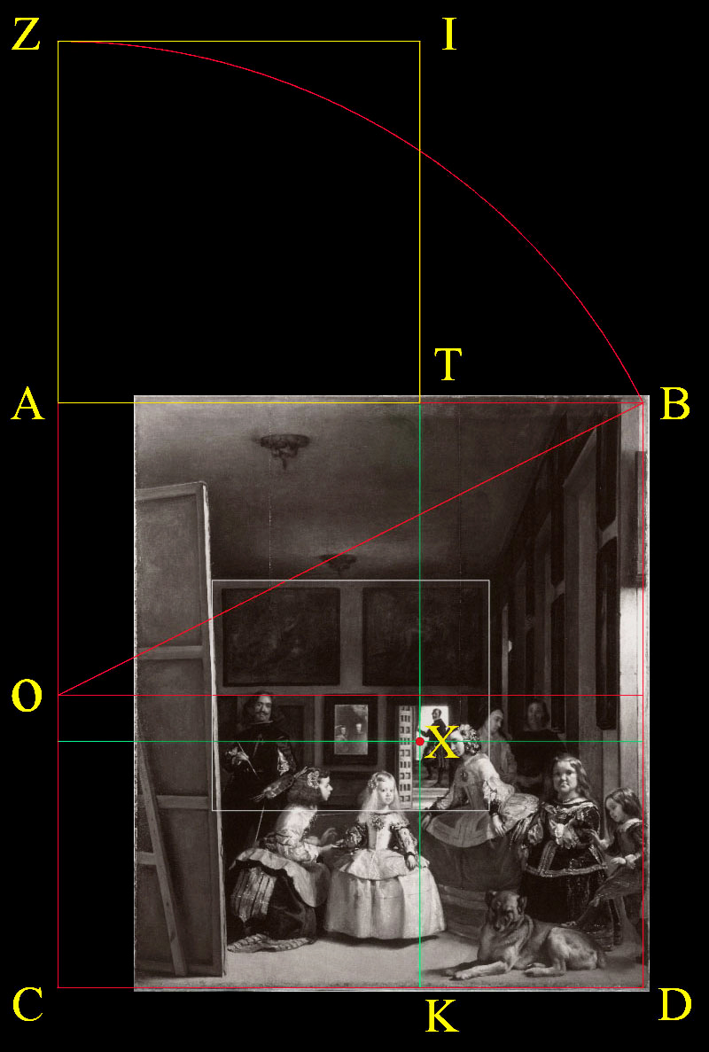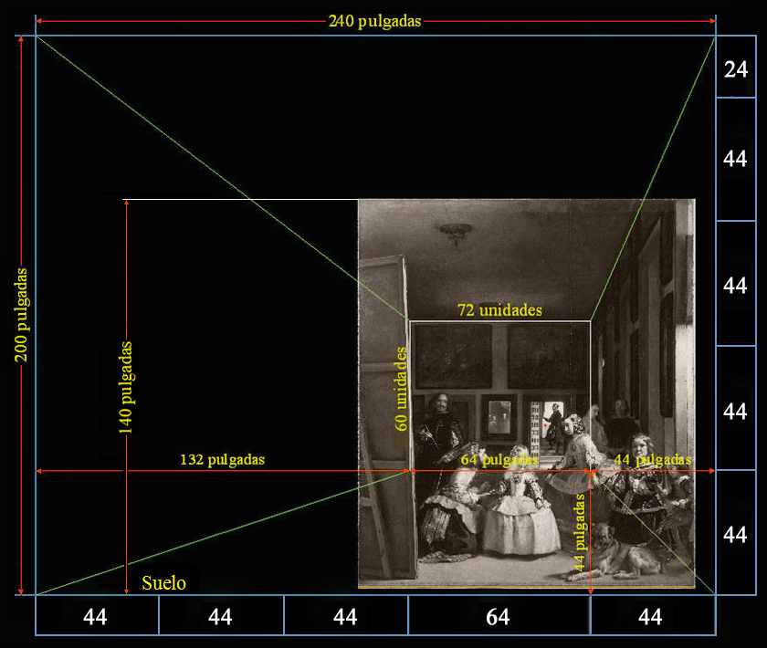 Y cierto es que Velázquez, además de pintar con gran naturalismo, compuso su obra maestra con proporción áurea, una Geometría cuya utilidad se demuestra con la ayuda de un cuadrado de 152 unidades de lado.