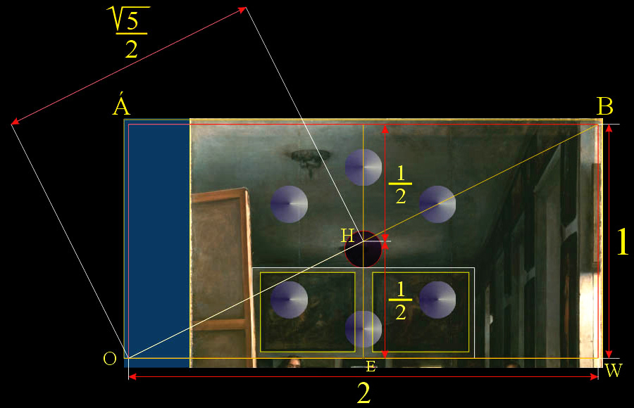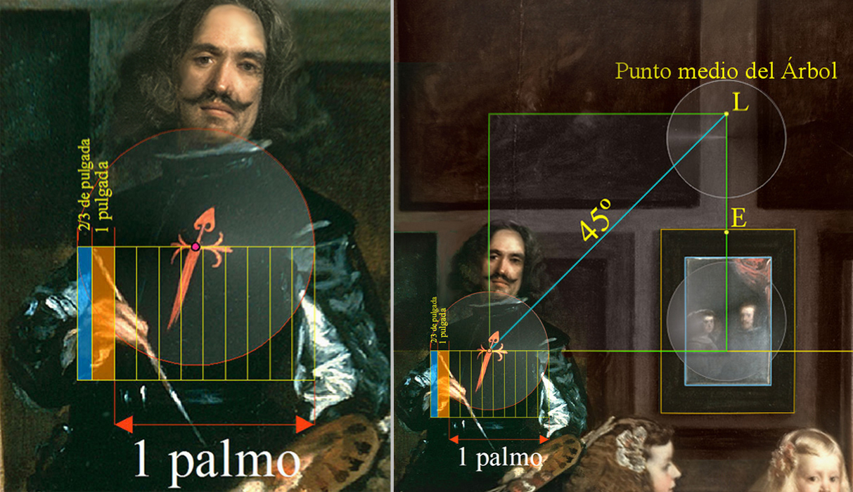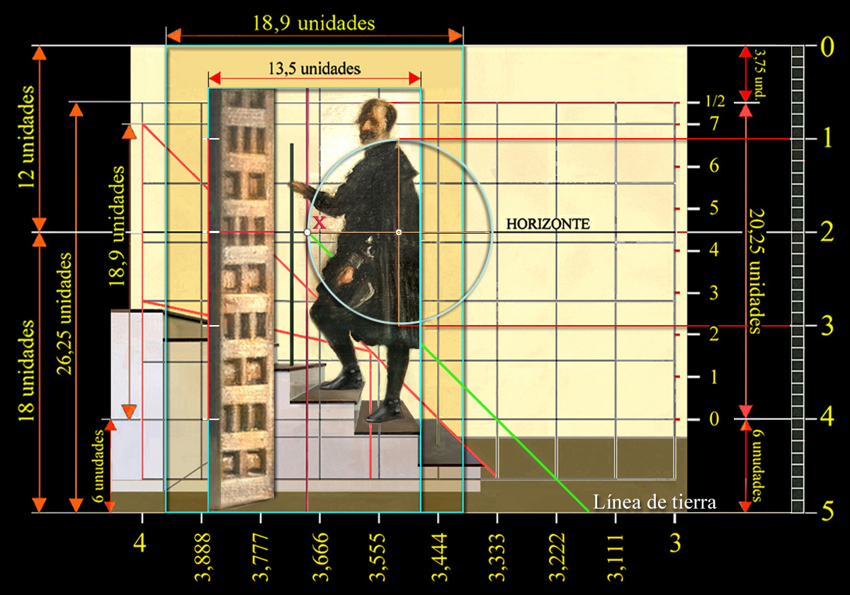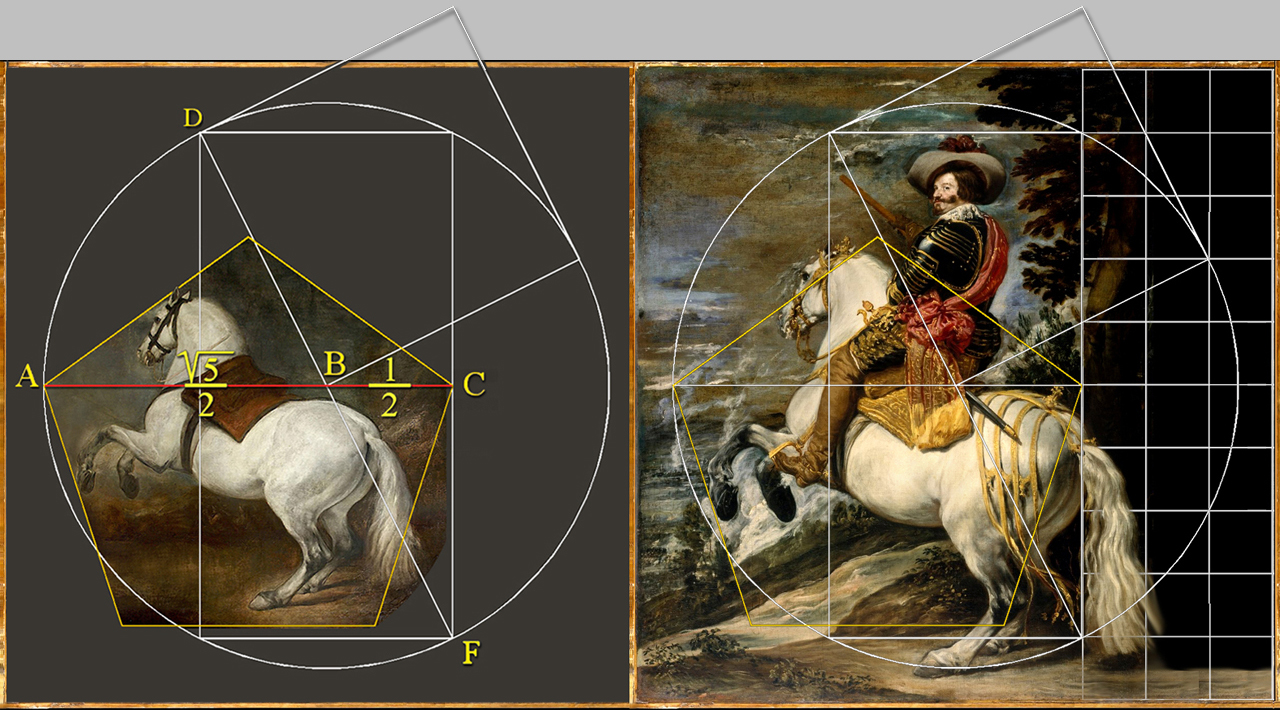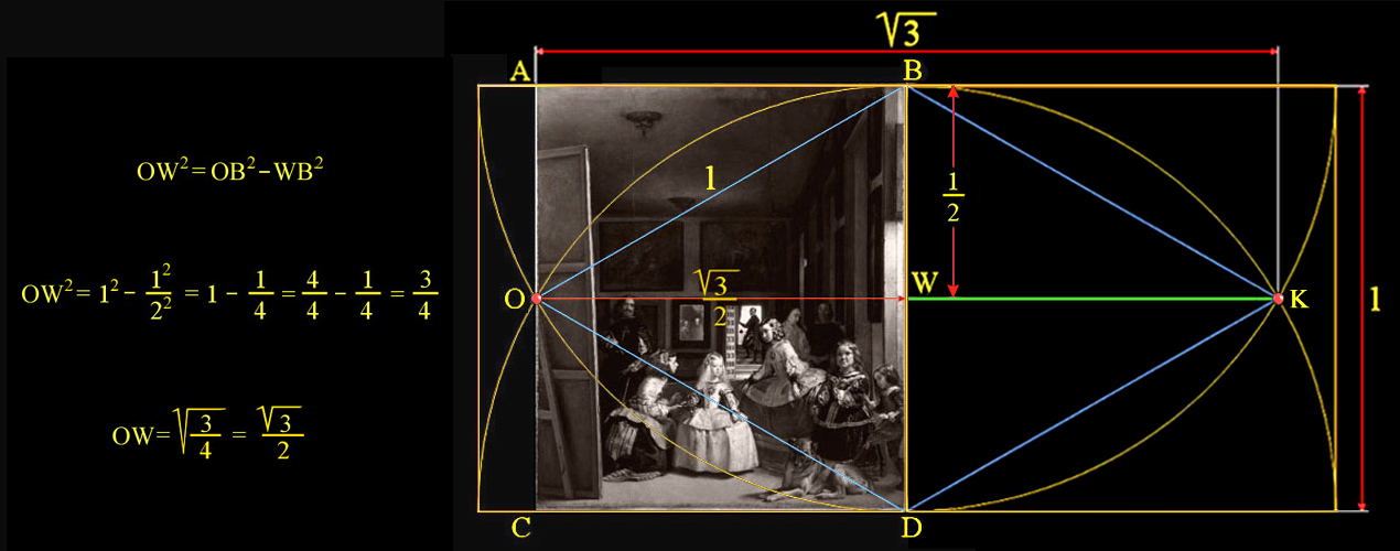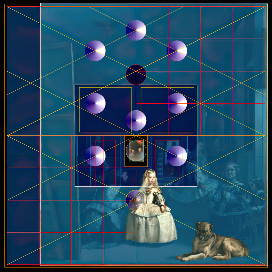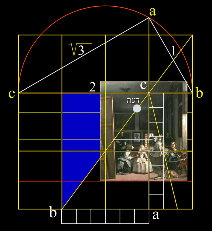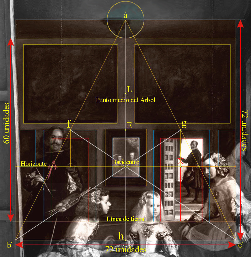 Y cierto es que Velázquez, además de pintar con gran naturalismo, compuso su obra maestra con proporción áurea, una Geometría cuya utilidad se demuestra con la ayuda de un cuadrado de 152 unidades de lado.