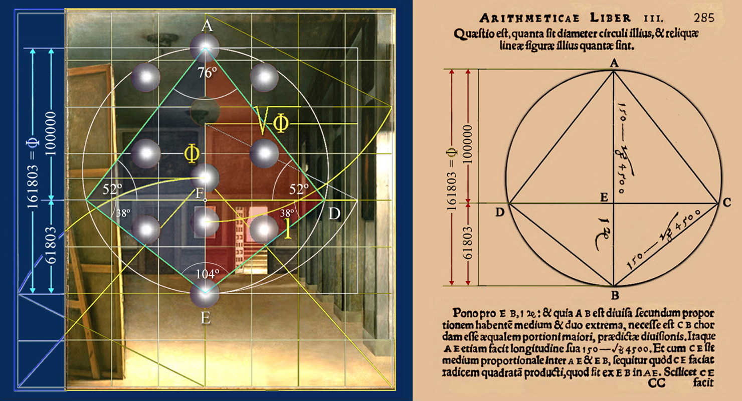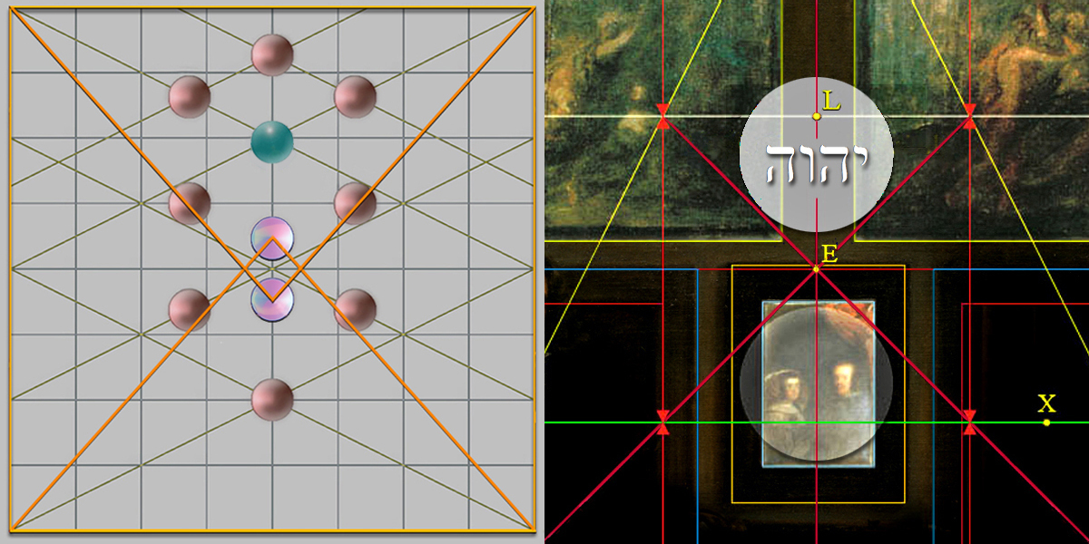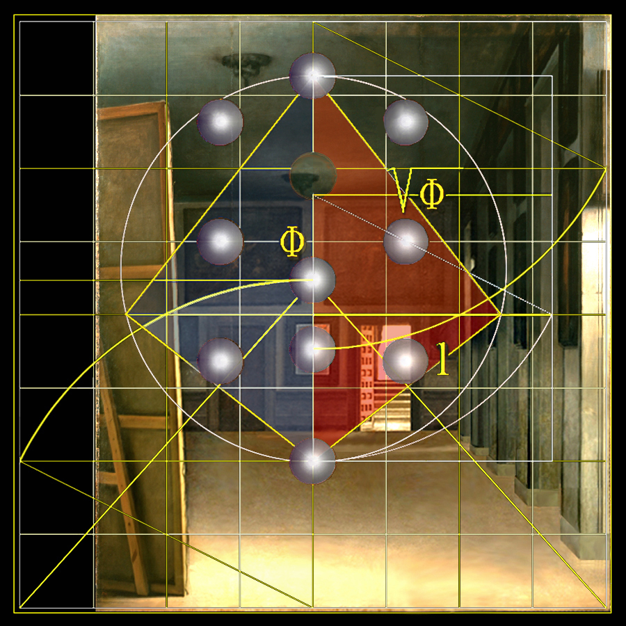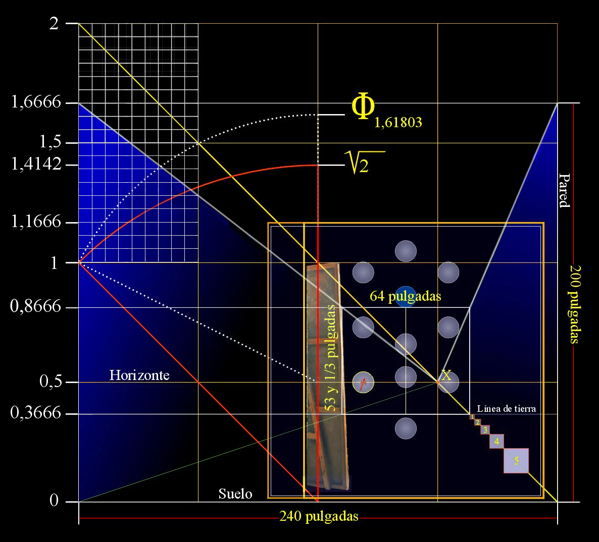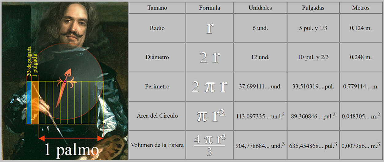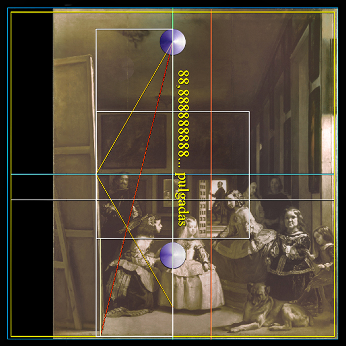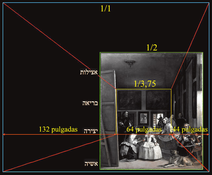 El tamaño de 3,141333... metros garantiza la altura necesaria para representar la Geometría áurea, y, a su vez, consolidar, en un mapa de 23.104 coordenadas posibles, a las diez esferas cabalistas en el transparente aire de la sala del Alcázar de Madrid representada en Las Meninas.
