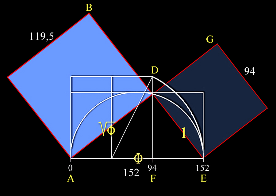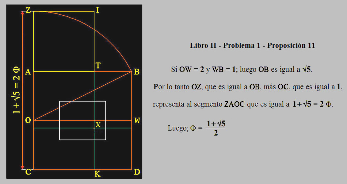 Dando el valor 2 al lado del cuadrado ÁBDC´ encontramos el modo de implicarnos en la proporción áurea.