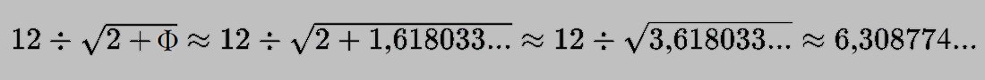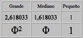 La suma de los segmentos FH + HG = FG, igual al número áureo Φ.
