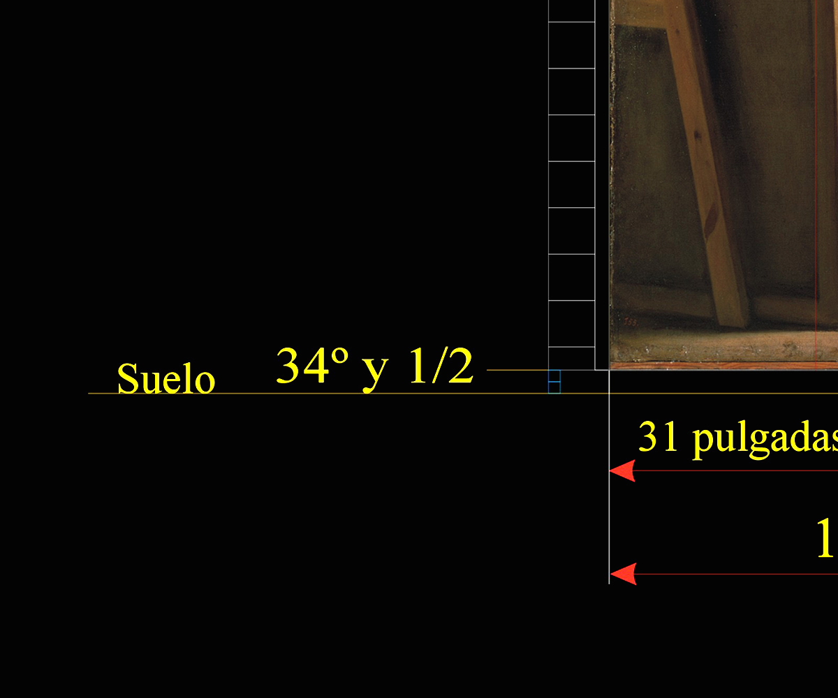 Y también se detecta que el borde superior del lienzo de Las Meninas se sitúa a 140 pulgadas del suelo de la Habitación del Príncipe.