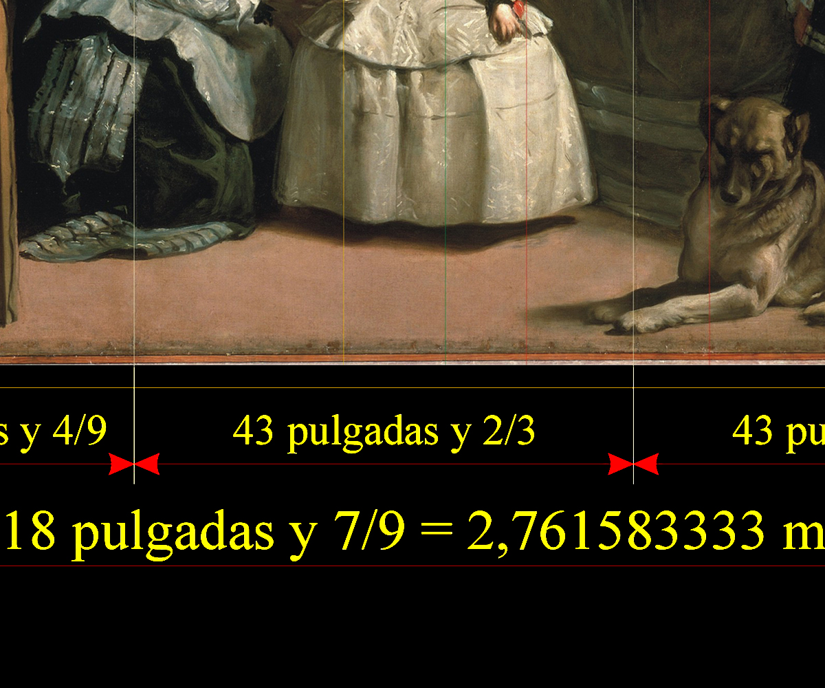 Tenemos bien entendido, pues, que la pulgada castellana se divide en doce partes llamadas líneas, y, sin contrariar al viejo sistema de medición castellano, podríamos ya decir que Velázquez hace uso de la pulgada fraccionada en 9 partes para poder así incluir a la unidad en sus precisas operaciones: