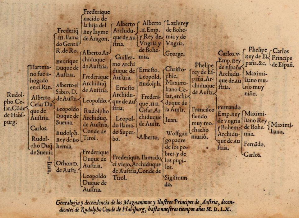 En el Escorial hayamos un árbol genealógico denominado: Rosal de Príncipes progenitores del Príncipe de España Don Felipe Nuestro Señor, en donde el linaje de Felipe II se remonta hasta el rey de Jerusalén.
