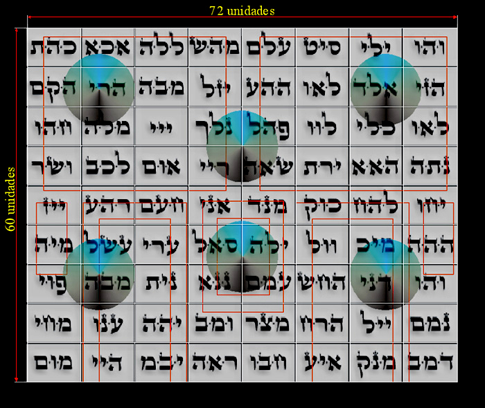 Este texto en hebreo tiene 216 letras que lo dividen en tres líneas, o versos, cada verso tiene 72 letras. Se podrían hacer seis versos de ellos, pero los rabinos no quieren que se haga así. Dense cuenta del gran arte del Schem Hamphoras. Si usted escribe las tres líneas y cada letra justamente debajo de la otra, entonces haga lo siguiente: Tome la primera letra de la primera línea, y la última de la siguiente línea, y la primera letra de la tercera línea y póngalas juntas para que se forme una palabra de tres letras, de esta manera haga esto con todas las letras en las tres filas y líneas, así puede encontrar 72 palabras que tienen tres letras cada una. |