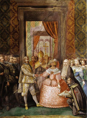 El dia en que ſe ha de celebrar eſta funcion, à que yo, placiendo à Dios, me hallarè: la forma y modo, como ſe ha de hazer, y el que ſe ha de guardar en subir los Cuerpos à las Vrnas, deſpues de ſu colocacion publica al Pantheon: tengo ya comunicado con vos Fr. Nicolás de Madrid diferente vezes, aſsi por eſcrito, como de palabra; con que en eſta parte no ay mas que dar execucion à lo acordado. Los que ſe han de poner en ellas, han de ſer: el del Emperador Carlos Quinto; de la Emperatriz Doña Iſabel ſu Muger; de Philipe Segundo; de la Reina Doña Ana; de mi Padre; de mi Madre; y de la Reina Iſabel, mi muy cara, y muy amada Muger. El del Emperador ha de eſtar en la Vrna ſuperior del Nicho de la parte del Euangelio, mas inmediato al Altar; y el de la Emperatriz, en la que correſponde a eſta, a la parte de la Epistola; los demas ſe han de ir colocando en las de los miſmos Nichos, baxando por ſus grados, aſsi los Varones, con ſus Mugeres, con que vendràn a quedar uno enfrente del otro, diuidiendolos ſolo el Altar. La Vrna inferior del Nicho, de la parte del Euangelio, viene a quedar deſocupada; la cual ſeñàlo para mi, para quando Dios quiſiere lleuarme desta vida, pues vendrè a eſtar debaxo de mis Mayores, y enfrente de mi Eſposa; lugar verdaderamente a propoſito, para quien los ha venerado con tanto rendimiento como yo, y amadola à ella tan de veras. Eſtos ſon los Cuerpos, que aora ſe han de trasladar al Pantheon (…).