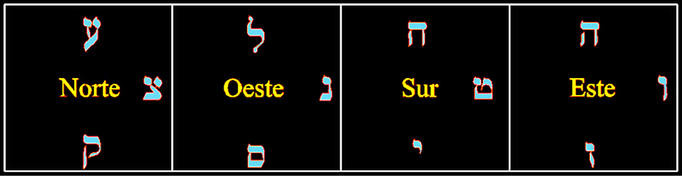 95. El Santo Bendito tiene un Árbol de doce límites diagonales: El límite noroeste, y el límite sureste. El límite superior este, y el límite inferior este. El límite suroeste, y el límite noroeste. El límite superior oeste, y el límite inferior oeste. El límite superior sur, y el límite inferior sur. El límite superior norte, y el límite inferior norte. Ellos se expanden continuamente hacia el infinito. Ellos son los brazos del mundo, y dentro de ellos está el Árbol. Paralelamente a estas diagonales hay doce Guardianes, y dentro de la Esfera también hay doce Guardianes. Incluyendo a los doce límites diagonales hacen un total de 36 Guardianes. Cada uno de los cuales tiene un regente; como está escrito, (Ecclesiastes 5:7); Sobre el alto está vigilando otro más alto, y uno más alto está sobre ellos. (Esto hace un total de 72). Por lo tanto, hay nueve en el este, nueve en el oeste, nueve en el norte y nueve en el sur. A la vez hay doce, doce y doce Guardianes que están en el Axis, en la Esfera y el Corazón; que hacen un total de 36, y el poder de cada uno de estos 36 está proyectado en los demás. Y aunque hay doce en cada uno de los tres, están vinculados entre sí. Consecuentemente, todos los 36 poderes están en el primero, el cual es el Axis. Y si los buscas en la Esfera también los encontrarás. Y si los buscas en el Corazón de nuevo los encontrarás. E igualmente, cada uno tiene 36, pero ninguno excede las 36 formas. Todos ellos completan el Corazón (לב, leb, de valor numérico 32). Y nos sobran cuatro; entonces, suma ahora 32 a 32 y obtendremos las 64 formas.