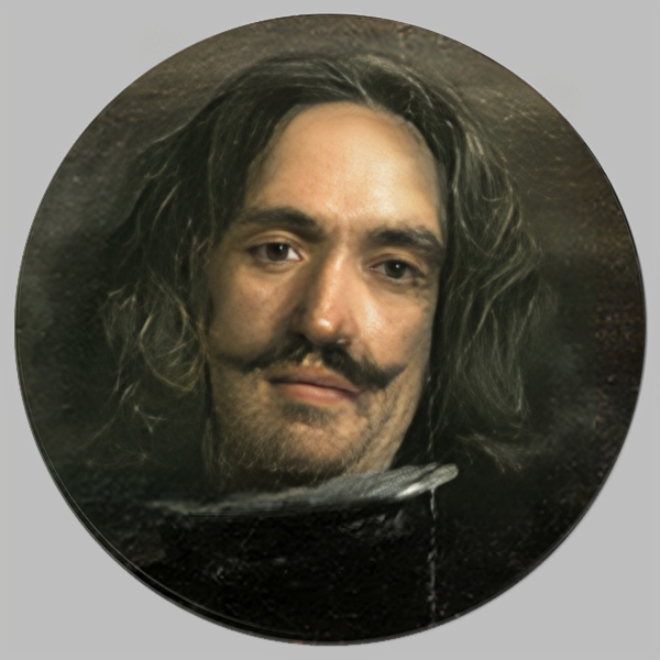 FELIPE DE BORBÓN Y GRECIA, PRÍNCIPE DE ASTURIAS, hijo de los anteriores. Nacido en 1968. Descendiente directo de los Reyes españoles y continuador de la Casa Real. Nieto en decimotercero grado de Velázquez.