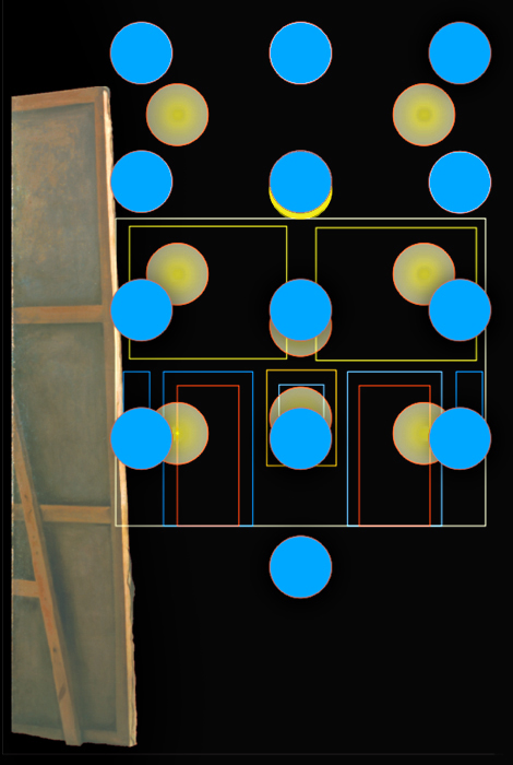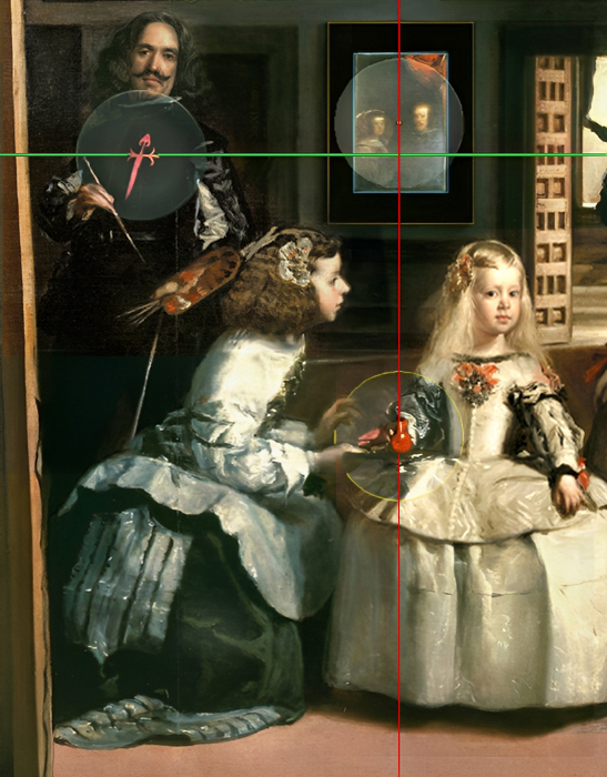 Se puede apreciar este tipo de división cuaternaria, además, en la disposición de los cuatro travesaños horizontales del Gran Bastidor que cierran a nuestra izquierda al lienzo de Las Meninas.