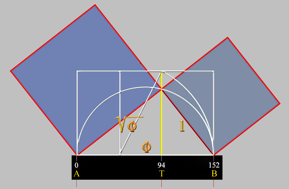 | AB / AT = 152 / 94 = 1,617021276... ⇔ Φ |