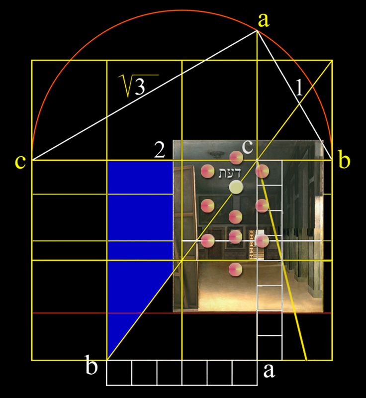 Como arte liberal, la trascendencia numérica; 3 - 4 - 5, del tamaño de los lados del triángulo rectángulo de Pitágoras, conecta, pues, con la estructura armónica de la Geometría de este óleo, y cuyo significado transciende más allá de la Pintura.