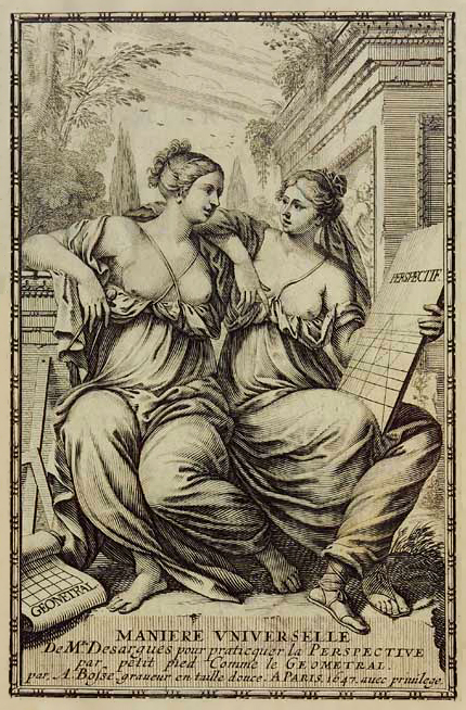 Y, en esta misma época, la Geometría proyectiva de Girard Desargues fundamentó los métodos de la perspectiva del Renacimiento matemáticamente, con la que era posible además la resolución de los problemas de la Geometría del espacio mediante operaciones efectuadas en un plano.