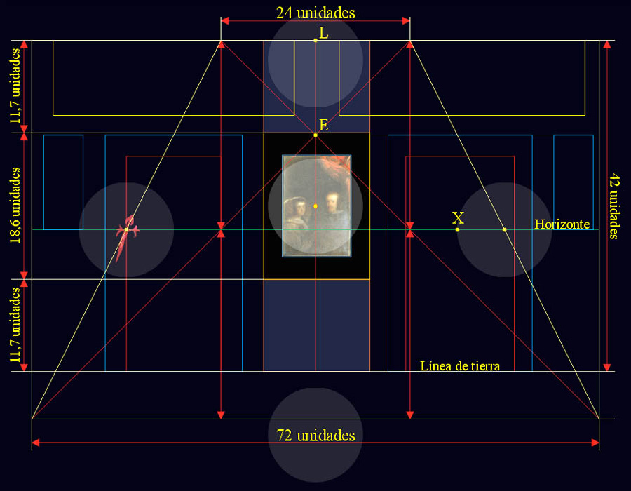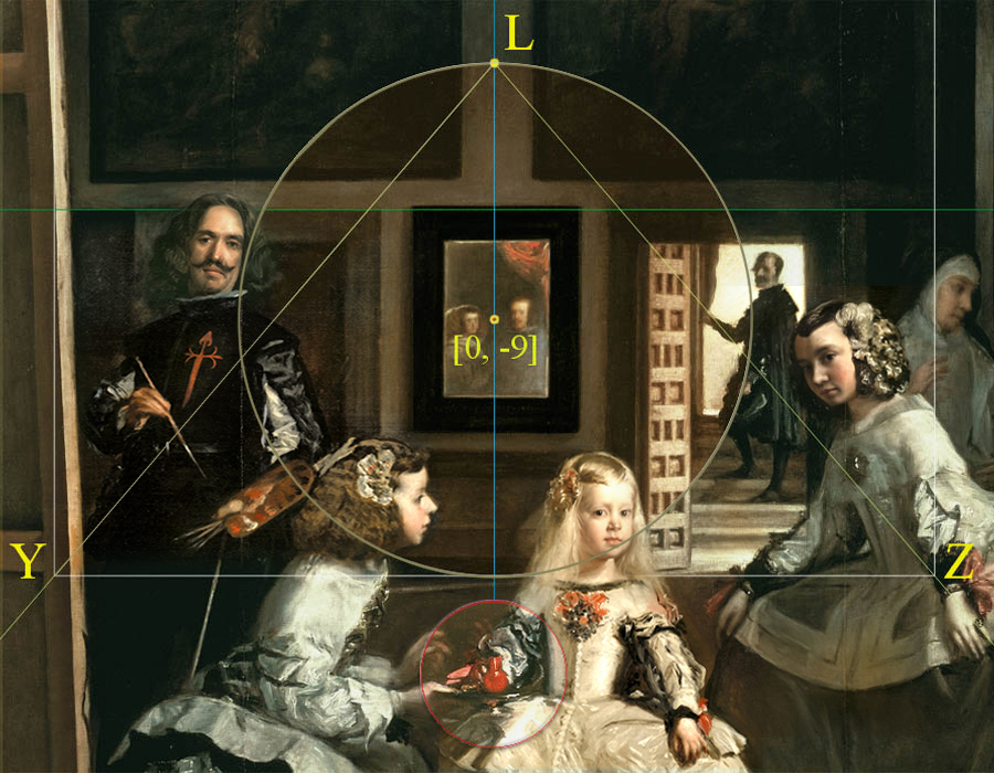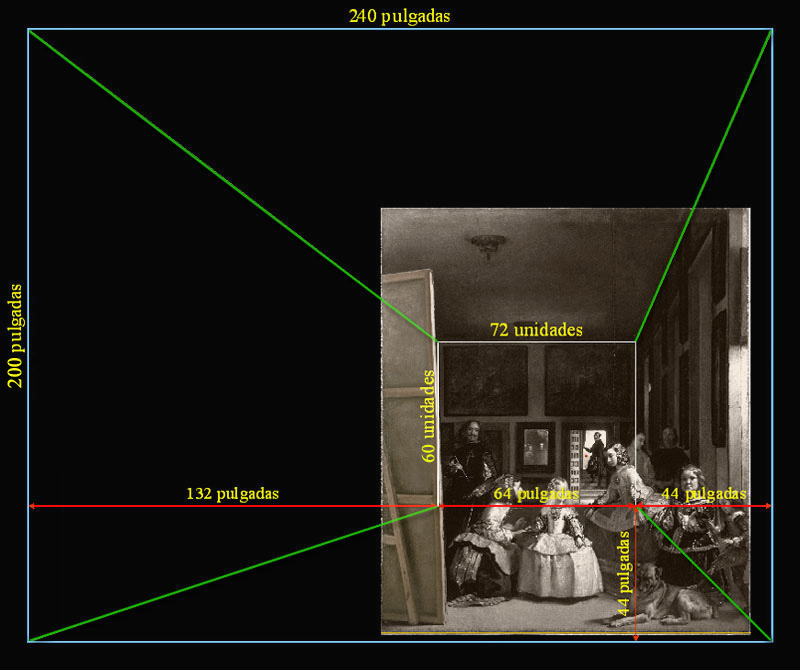 Y cierto es que Velázquez, además de pintar con gran naturalismo, compuso su obra maestra con proporción áurea, una Geometría cuya utilidad se demuestra con la ayuda de un cuadrado de 152 unidades de lado.