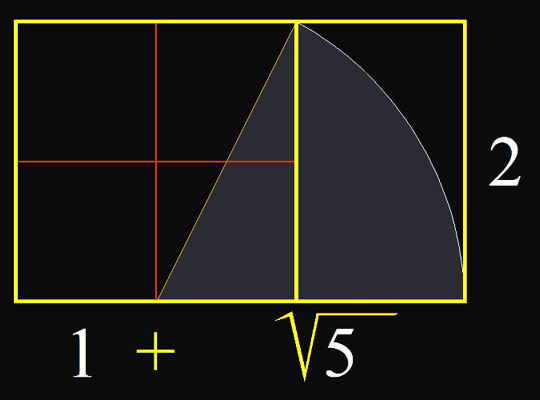 Proponemos, pues, un triángulo Áureo cuya hipotenusa equivale al lado de la rejilla de trabajo de 152 unidades: