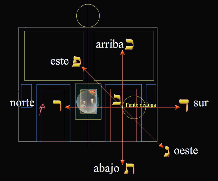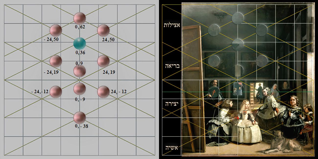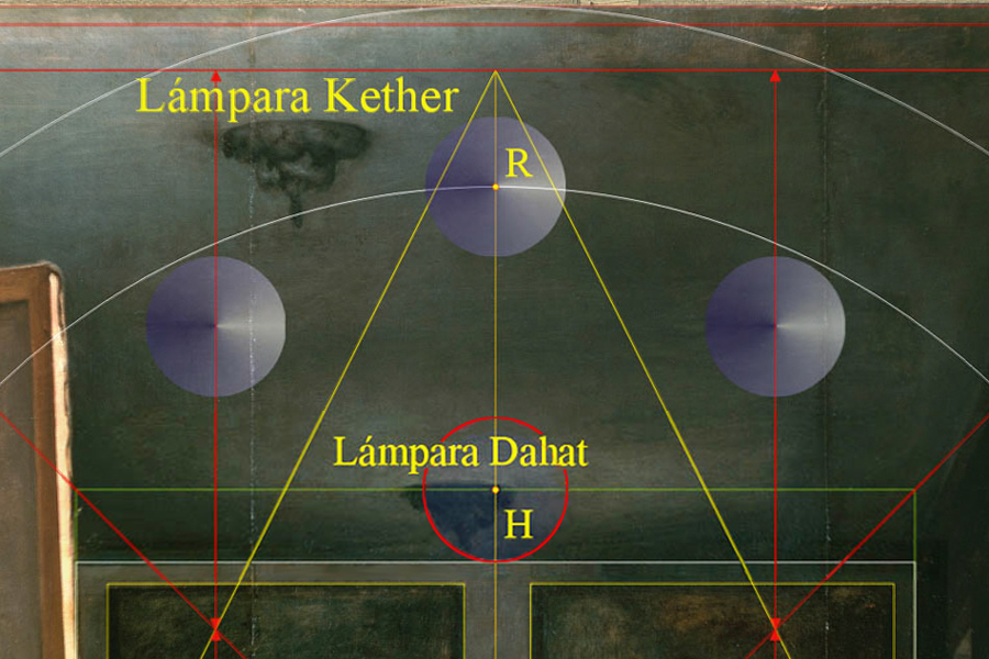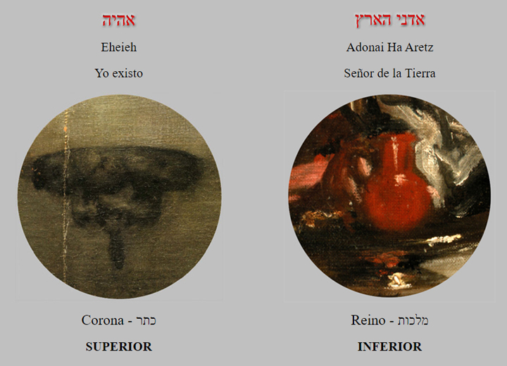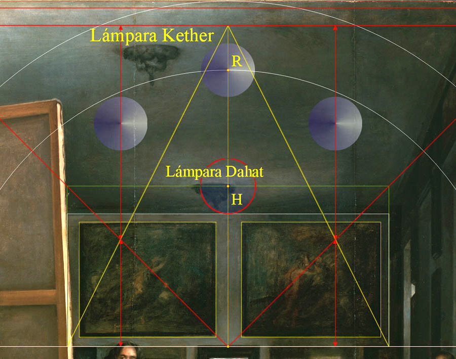 Velázquez desarrolla en Las Meninas un lenguaje de signos específicos, mediante el cual se materializa la comunicación y el entendimiento con esta pintura, de manera, que es ahora cuando cae el velo, y se nos permite ver en el techo de esta obra maestra la primera parte de la gran propuesta cabalística del pintor Diego Velázquez; el primer Mundo, el plano de la emanación, constituido por las tres primeras Sefirot: