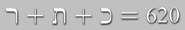 Las 613 mitzvot, o preceptos de la Torah Escrita, más los 7 mitzvot de la Torah Oral hacen un total de 620.