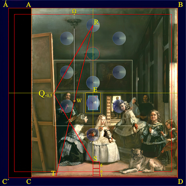 Así que, ante tales cifras, hemos elegido la permutación más adecuada cuando hablamos del espacio rectangular de la pared del fondo de Las Meninas respecto a los siete rectángulos inscritos en ella.