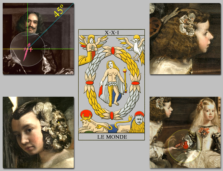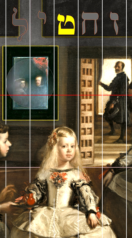Al espacio de la Infanta Margarita de Austria, como a todo participante relevante de esta composición pictórica, le corresponde una letra hebrea en particular, exactamente la letra simple Tet, novena letra del alefato, cuyo significado es: