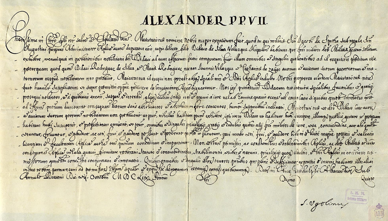 El propósito del pintor quedó vinculado para siempre a Las Meninas, y, por su origen portugués, recordaríamos que habían trascurrido, exactamente, 125 años desde que Clemente VII expidiera en Roma el 17 de Diciembre de 1531 una bula, a petición del rey Juan III, para el establecimiento de la Inquisición en Portugal.