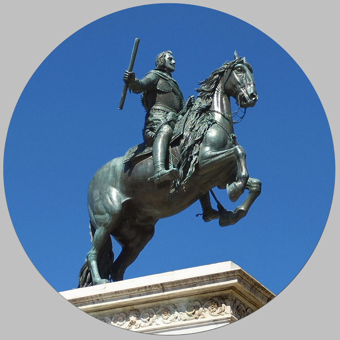 Esta estatua se puede contemplar actualmente en la plaza de Oriente de Madrid.