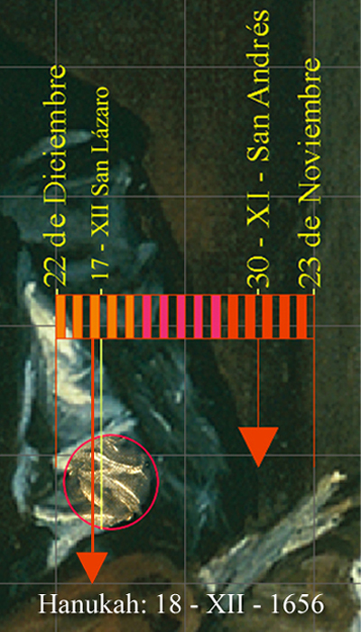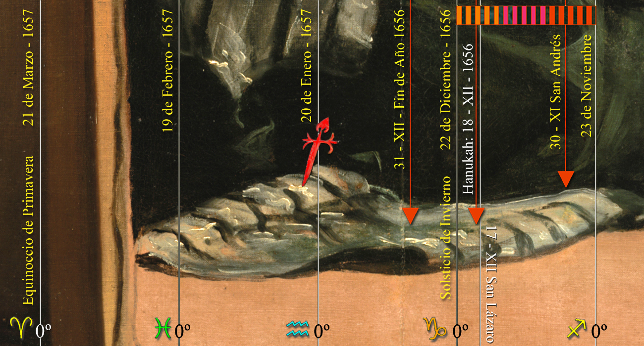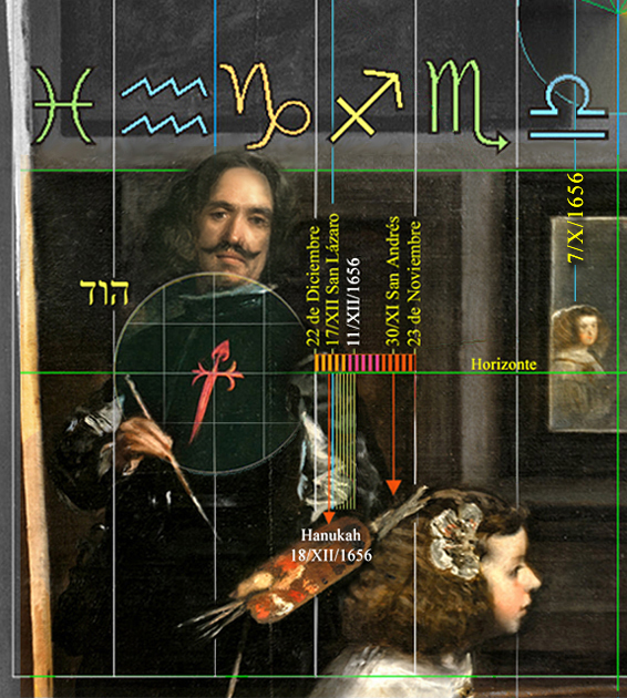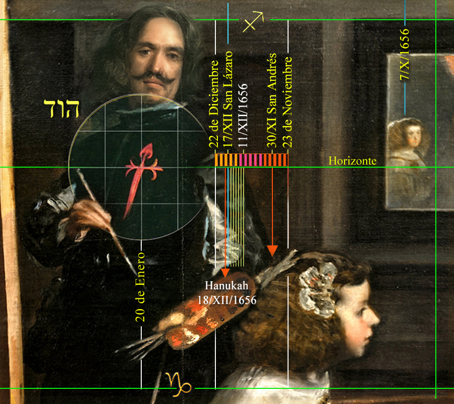 El 17 de Diciembre de 1656, el año en curso en el que se pintaron Las Meninas, cayó en Luna nueva, en el primer día del décimo mes Tevet o Rosh Chodesh, ראש חודש, que se traduce por Cabeza del mes, o primer día de cada mes en el calendario hebreo.