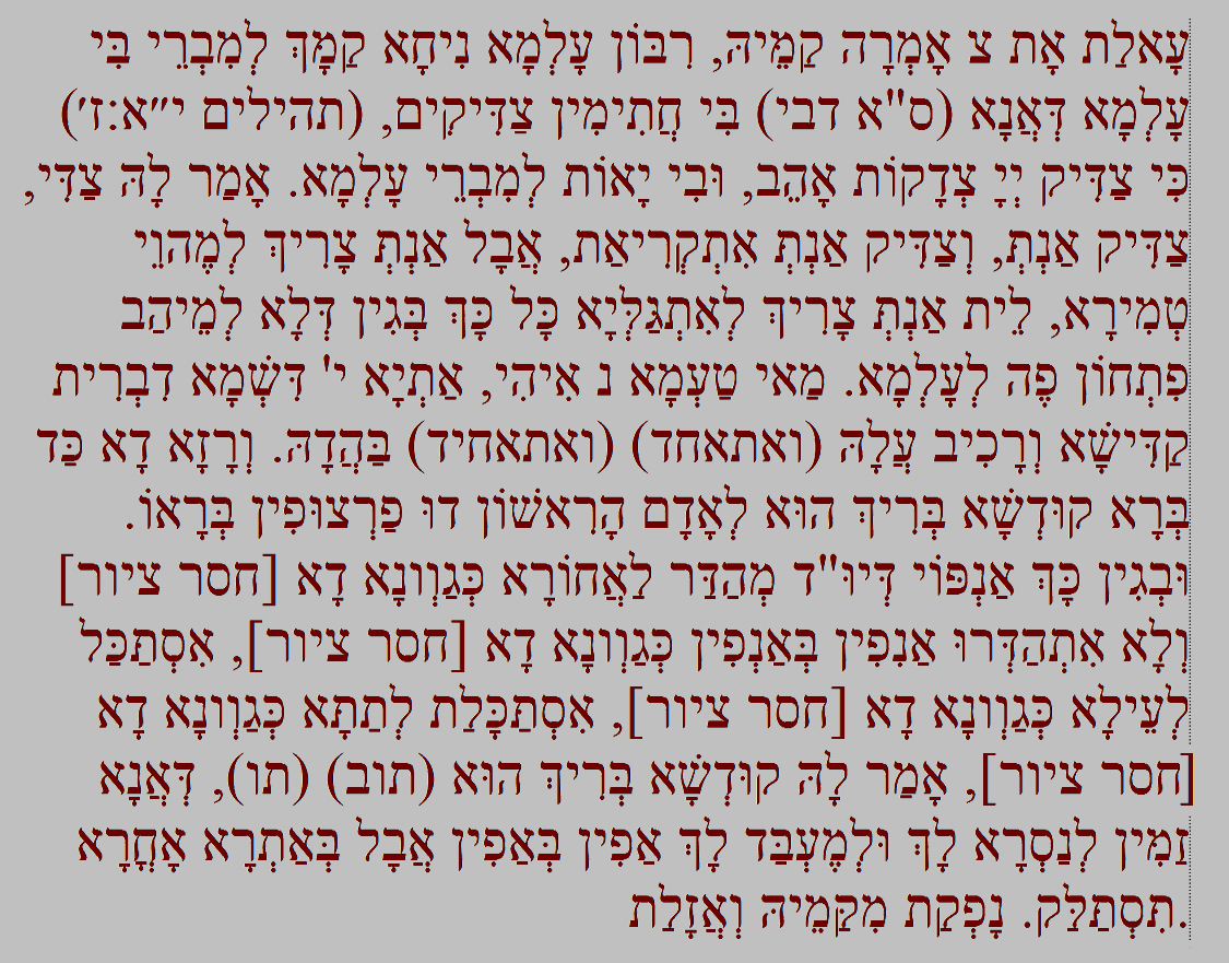 8 – 6.3.4. R. Simón b Quizit dijo en nombre de R. Leví: El Santo, bendito sea, les dijo: Ni vosotros ni los profetas habéis pedido adecuadamente, pues también un rey terrenal pasa y la corona acaba cayendo de su cabeza y el dosel encima de él.
