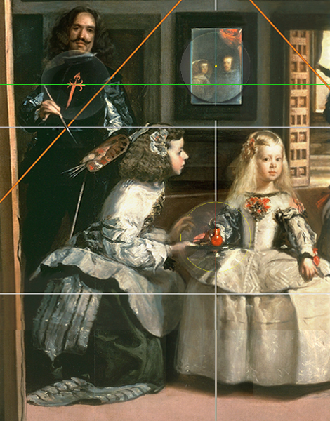 Ante esta modalidad de análisis Diego Velázquez no negaría que se limitó a pintar a un grupo de once personas y a un perro en una sala de palacio, y, sin embargo, cumplidamente, el artista llevó a cabo su plan de trabajo a la vista de todos.
