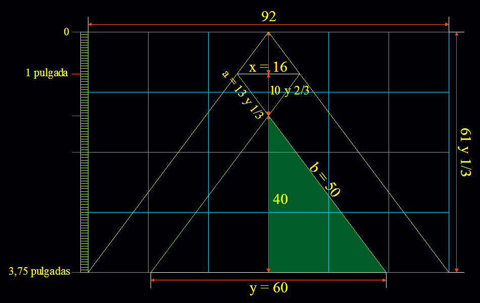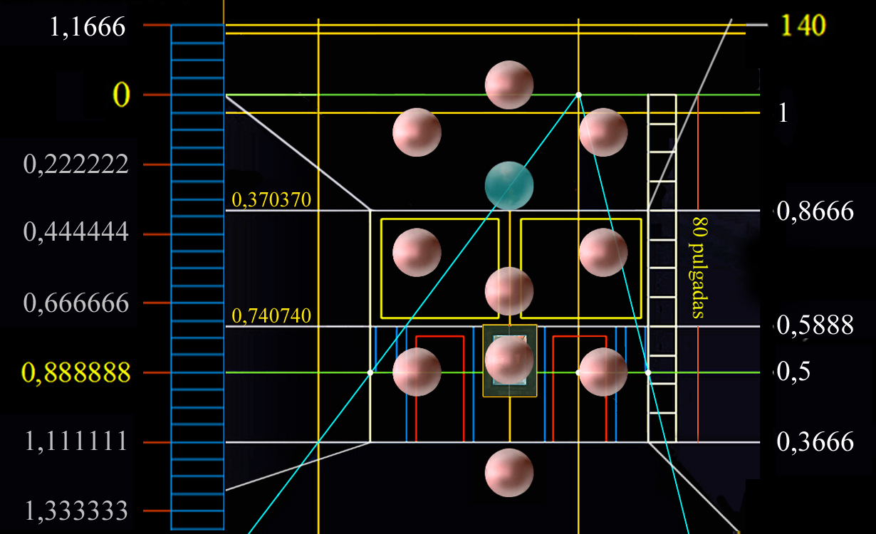 | Zona izquierda 132 pulgadas | Zona central 64 pulgadas | Zona derecha 44 pulgadas | ||