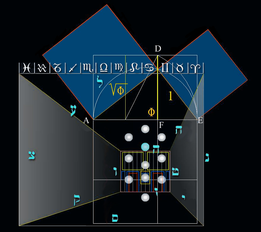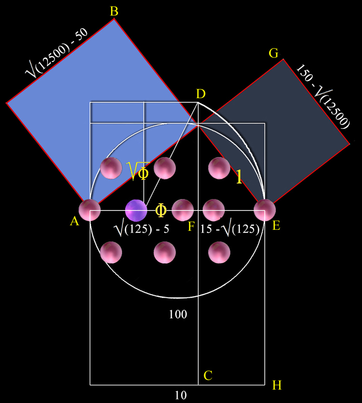 Y como botón de muestra, una Geometría organizada a partir de vectores diagonales, que consolidan las hipotenusas de triángulos rectángulos cuyos catetos miden 1 y 2 respectivamente, que equivalen a la raíz cuadrada de 5, y cuya raíz cuadrada forma parte de la fórmula del número áureo.