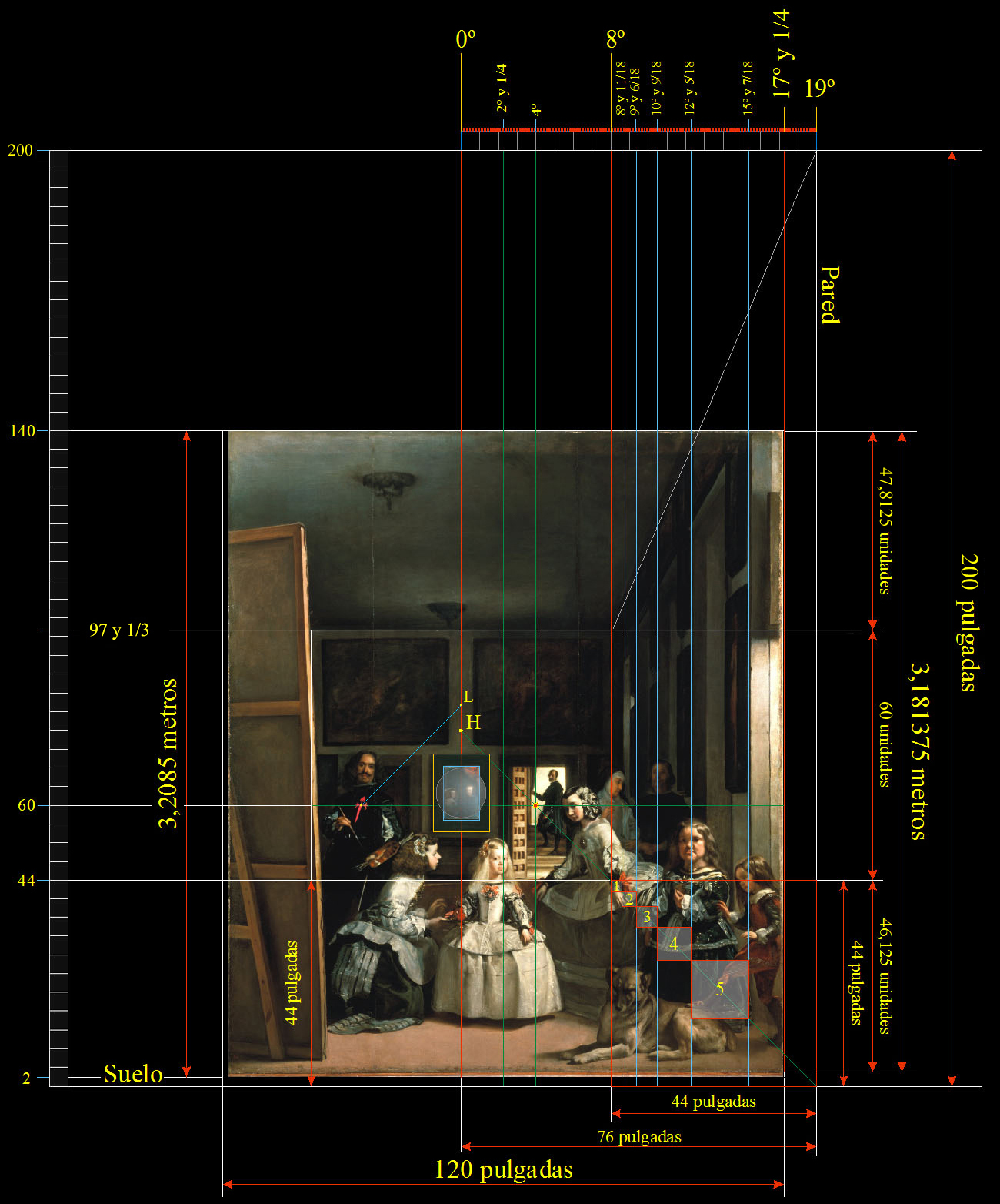En el estudio de la perspectiva de La Túnica de José hemos operado con el mismo sistema de medidas castellanas usado en el análisis de Las Meninas.