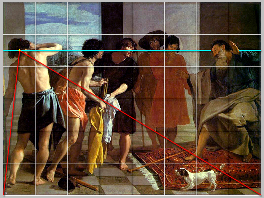 45 - Velázquez en su primer viaje a Italia pinta dos grandes cuadros de argumentos muy distintos, pero en ambos temas se pintan seis figuras y se habla de la traición y la mentira:
