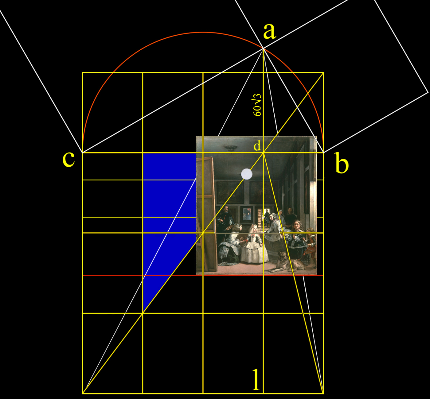 13 - Análisis del triángulo equilátero según la anchura del óleo de Las Meninas.