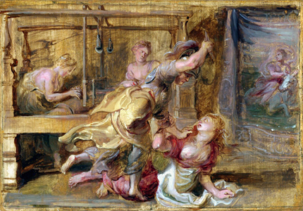 Jacob Jordaens compuso su lienzo, pues, hacia 1637 a partir de un boceto sobre tabla de Rubens de la colección del Museo Real de Bruselas [1].