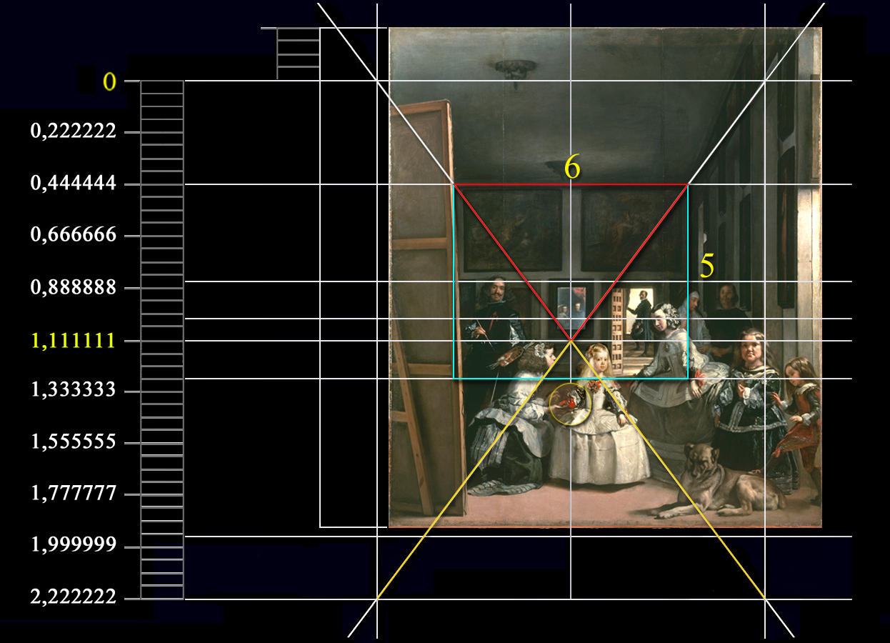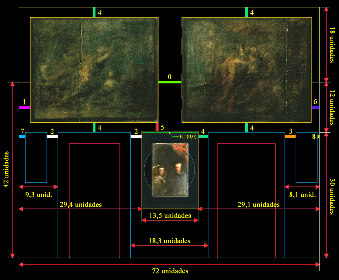 Aunque se pinte con marco el gran cuadro superior derecho de Las Meninas no es óbice para hablar de proporcionalidad.